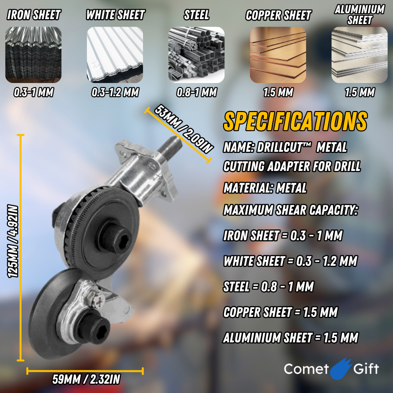 Turn your drill into a powerful metal cutting tool with DrillCutPro: efficiently cut metals and sheet metal, maximize precision, and ease your DIY and professional projects with comfort and efficiency.
