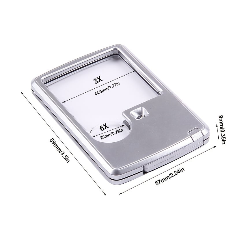 - 2 in 1 lens with a small round 6X lens and large 3X lens to provide different magnifying effects.