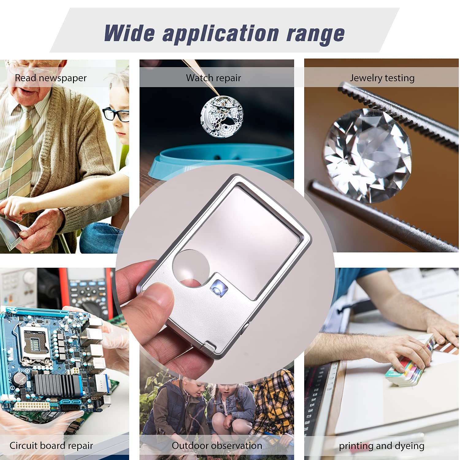 - Wide Application: Lighted magnifying glass with light is very suited for visual impairment, coin collectors, rock collectors, jewelers, hobbyists, antique enthusiasts, and also an ideal gift for kids, friends, parents, old people, etc.