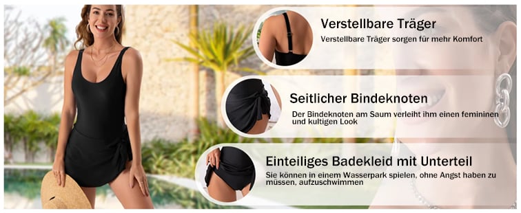 Elastische Stoffe in der Taille lassen Sie schlanker aussehen, die breiten, verstellbaren Träger und die nicht abnehmbaren, gepolsterten BHs sorgen für maximalen Halt und machen Sie noch bequemer.
